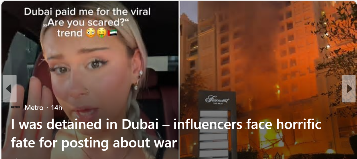 நான் துபாயில் கைது செய்யப்பட்டேன் - போரைப் பற்றி பதிவிட்டதற்காக பயங்கரமான விதியை எதிர்கொள்கின்றனர்........