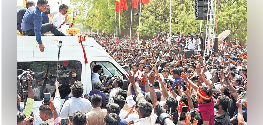 பிரச்சாரத்திற்கு 5 நிமிடங்கள் தாமதமாக வந்ததால் டிவிகே தலைவர் விஜய் உரையாற்றாமல் புறப்பட்டுச் சென்றார்........