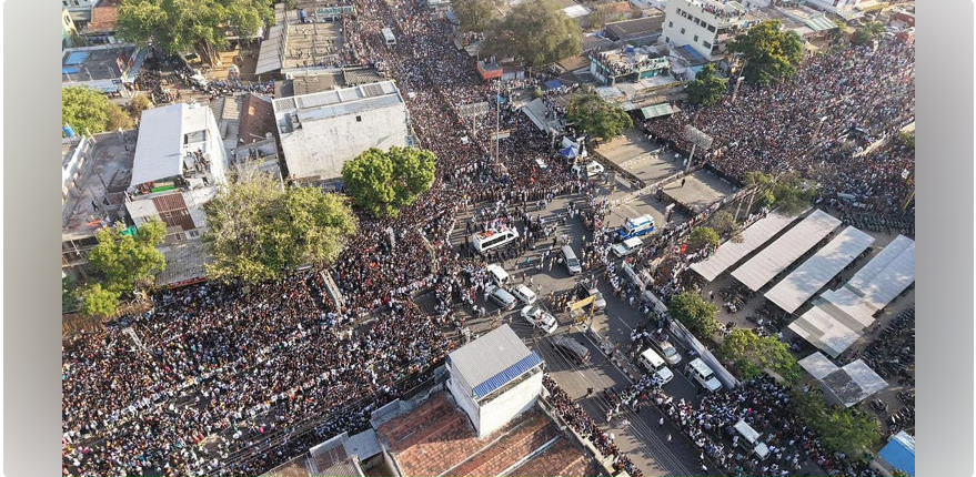 விஜய்யைப் பார்க்கக் கூட்டம் கூடியதால் கோயம்புத்தூரில் போக்குவரத்து பாதிக்கப்பட்டது........