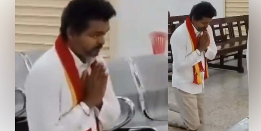 திருச்சிராப்பள்ளி தேவாலயத்தில் விஜய் பிரார்த்தனை செய்யும் காணொளி.......