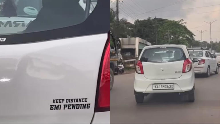கர்நாடகாவை சேர்ந்த ஒருவரின் காரில் இருந்த வேடிக்கையான EMI எச்சரிக்கை பலகை வைரலாகிறது.......