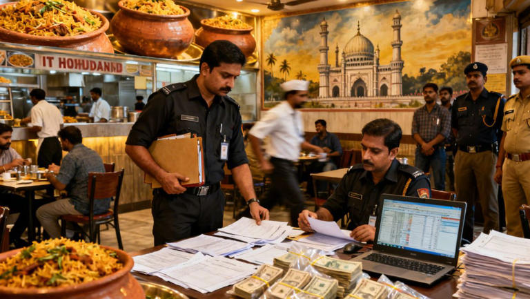 ஹைதராபாத் பிரியாணி ஹோட்டலில் நடந்த ஐடி சோதனைகளில் இந்தியா முழுவதும் ரூ.70 000 கோடி வரி ஏய்ப்பு கண்டுபிடிக்கப்பட்டது; .......